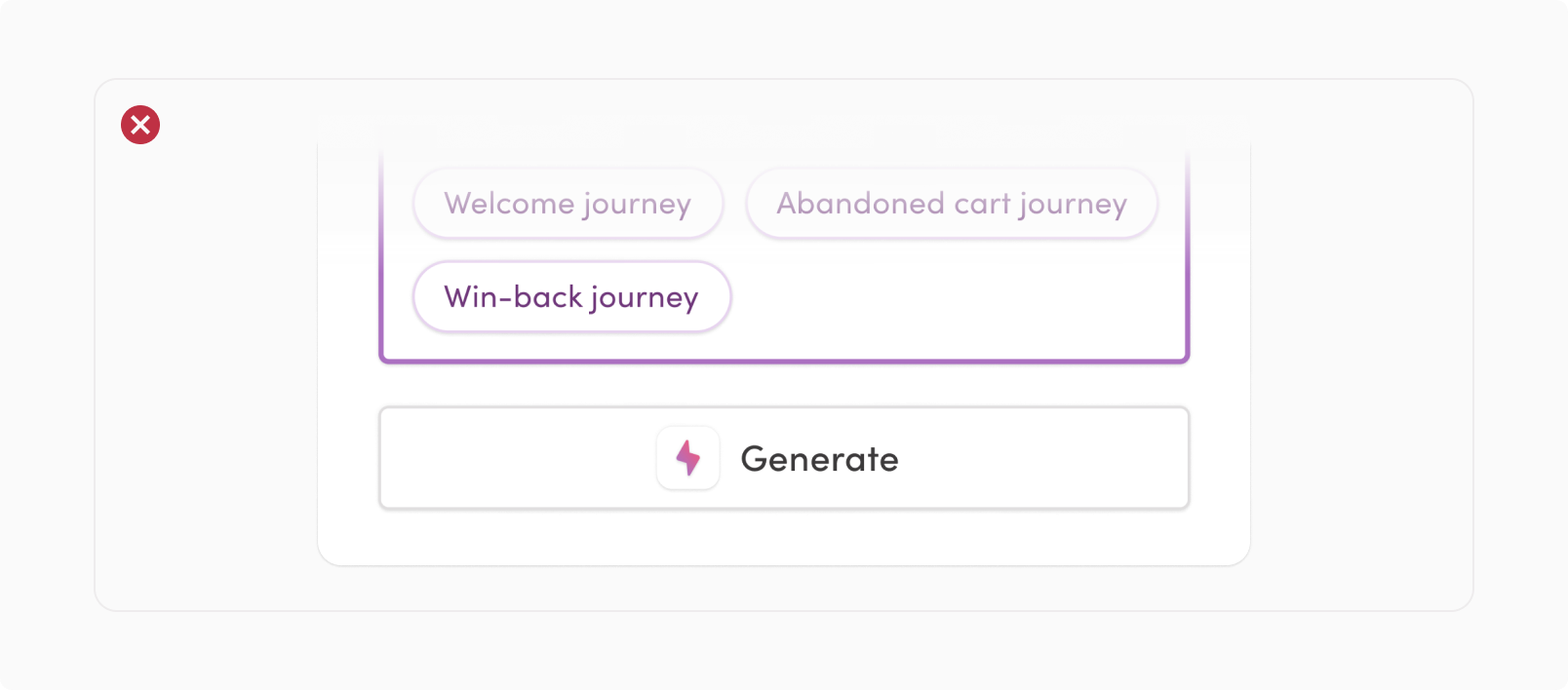 - It may also be considered when other Iterable AI icons or color patterns, like the gradient or sparkle icon, are present. This will help avoid overwhelming with too many AI visual elements.